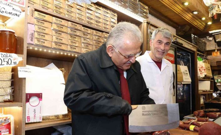 Kayseri Büyükşehir Belediye Başkanı Dr. Memduh Büyükkılıç, haftanın ilk iş gününde Kazancılar Çarşısı sarrafları ile pastırma, sucuk satışı yapan esnafı ziyaret etti. Başkan Büyükkılıç, esnaf ziyaretinde pastırma da doğradı.