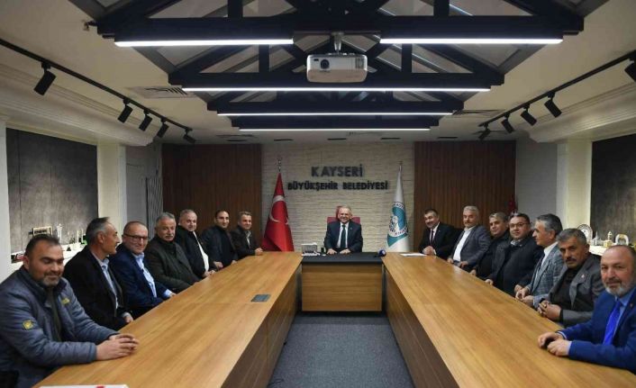 Büyükşehir Belediyesi Başkanlık Toplantı Salonu’nda gerçekleşen teşekkür ziyaretine, Kayseri Ziraat Odaları İl Koordinasyon Kurulu Başkanı Güneş’in yanı sıra Kocasinan Çiftçi Malları Koruma Başkanı Bahri Zengin, Kalkancık Muhtarı Hacı Saygı, Höbek Muhtarı Hasan Özkök, Akin Muhtarı Ethem Arslan, Hasancı Muhtarı Kemalettin Danacı, Yazır Muhtarı Hacı Mehmet Kılıç, Ebiç Muhtarı Ebu Bekir Dursun, Karakimse Muhtarı Feramuz Çilkoparan, Kuşçu Muhtarı Ali Osman Uslu, Saraycık Muhtarı Ömer Ceviz, ve Çevril Muhtarı Hamza Göktaş katıldı.
