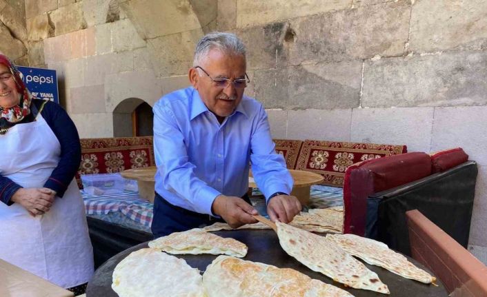 Kayseri’deki tarih ve turizm varlıklarını gün yüzüne çıkarma konusunda büyük gayret gösteren Başkan Büyükkılıç, Kayseri Valiliği ve çeşitli kamu kurum ve kuruluşlarla işbirliğinde çalışmalarını sürdürüyor. Bu çerçevede, Bünyan’daki Selçuklu eseri Sultan Hanı’nı KAYTUR hizmetleri ile buluşturarak turizme kazandıran Büyükşehir Belediye Başkanı Dr. Memduh Büyükkılıç, 791 yıllık Sultan Hanı’nı ziyaret etti. Sultan Hanı’nda bazlama ve gözleme pişirerek ziyaretçilere ikram eden Başkan Büyükkılıç, bölge sakinleri ve hanı ziyarete gelen vatandaşlar ile de görüştü. Selçuklu’dan bugüne kadar taşınmış olan en önemli eserlerden Sultanhanı’nı ziyaret ettiklerini ifade eden Büyükkılıç, “Burası eşsiz tarihin izlerinin taşlarında yaşadığı, mutfağından mis gibi kokuların yayıldığı, herkesin gelip görmesi gereken yer. Tüm hemşehrilerimizi bekliyoruz” diye konuştu.