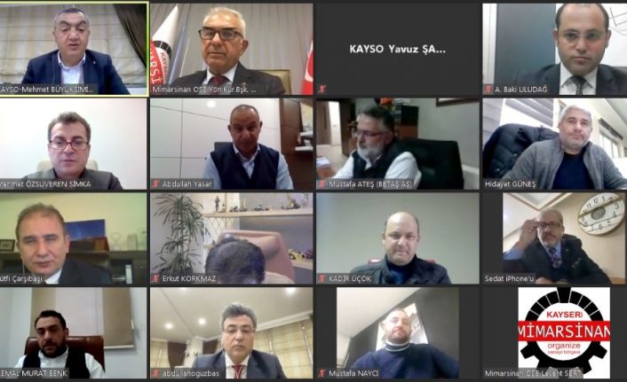 Mimarsinan Organize Sanayi Bölgesi 166. Müteşebbis Heyet Toplantısı video konferans sistemi üzerinden gerçekleştirildi. Toplantıya Kayseri Sanayi Odası (KAYSO) Yönetim Kurulu Başkanı ve aynı zamanda Mimarsinan OSB Müteşebbis Heyet Başkanı Mehmet Büyüksimitci, Mimarsinan OSB Yönetim Kurulu Başkanı Mehmet Karabulut ve Mimarsinan OSB Müteşebbis Heyet Üyelerinin katılımı ile gerçekleştirilen toplantıda, gündemdeki konular görüşülerek karara bağlandı.