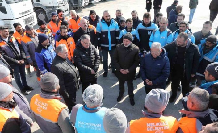 Büyükşehir, Kocasinan, Melikgazi, Talas, Hacılar ve Yahyalı belediyelerinden oluşturulan 20 araç, 100’e yakın çöp konteynırı, çadırlar, barınma, ısınma malzemelerinin yüklendiği araçlar ile 100 personel, Kahramanmaraş’a doğru yola çıktı.