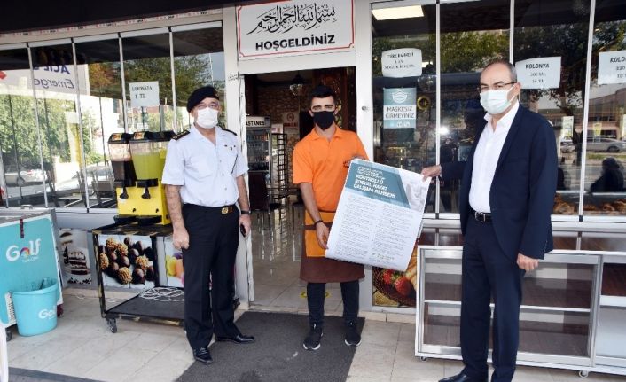 İşyerlerine dağıtılan afişleri asmayanlara, aykırı hareket edenlere ve zorunluluklara uymayanlara ‘Umumi Hıfzıssıhha Kanununun 282’nci maddesi gereğince; 250 TL’den Bin TL’ye kadar idari para cezası uygulanacağını hatırlatan Başkan Gülsoy, “Afişlerde maskesiz müşteri alınmaması, mesafeye uymak kaydıyla her 4 metrekare için bir kişi bulundurulması, kasa önünde müşteri bekleme yerleri arasında (en az 1,5 metre) olacak şekilde yer işaretlemesi yapılması, maske kullanımı, hijyenin önemi ve mesai saatleri gibi hatırlatmalar bulunmaktadır. Esnafımızdan mağdur duruma düşmemeleri için afişleri asmalarını ve yazılı maddelere harfiyen uymalarını istiyoruz.” ifadelerini kullandı.