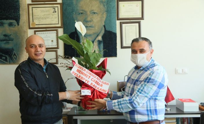 Çiçek ve ziyaretlerinden dolayı memnuniyetlerini ifade eden eczacılar, Başkan Mehmet Cabbar’a teşekkür etti.