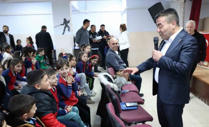 Bünyan Belediye Başkanı Selahattin Metin, ilçedeki öğrencilere hediye dağıttı.