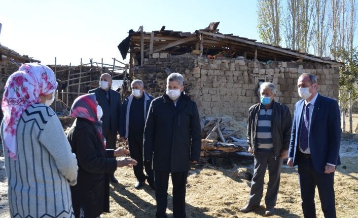 Bünyan Belediye Başkanı Özkan Altun, Kahveci mahallesinde çıkan yangında 9 büyükbaş hayvanın telef olduğu ahırda incelemede bulundu.