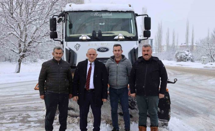 Yoğun kar yağışının etkisini gösterdiği Yahyalı’da, Belediye Başkanı Esat Öztürk kar küreme aracına binerek ilçe merkezinde yolları temizledi.