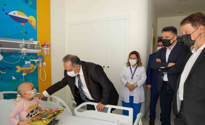 Burada ilk olarak Çocuk Onkoloji Başhekimi Prof. Dr. Musa Karakürkçü ve Erciyes Üniversitesi Tıp Fakültesi Hastaneleri Başhekimi Prof. Dr. Haluk Kutay Taşdemir ile görüşen Başkan Yalçın, doktorlarla birlikte tedavi gören çocukları ziyaret etti.