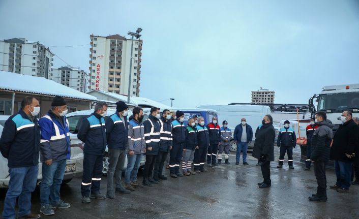 Talas Belediye Başkanı Mustafa Yalçın, Kış Çalışması Ekiplerine moral ziyaretinde bulundu.
