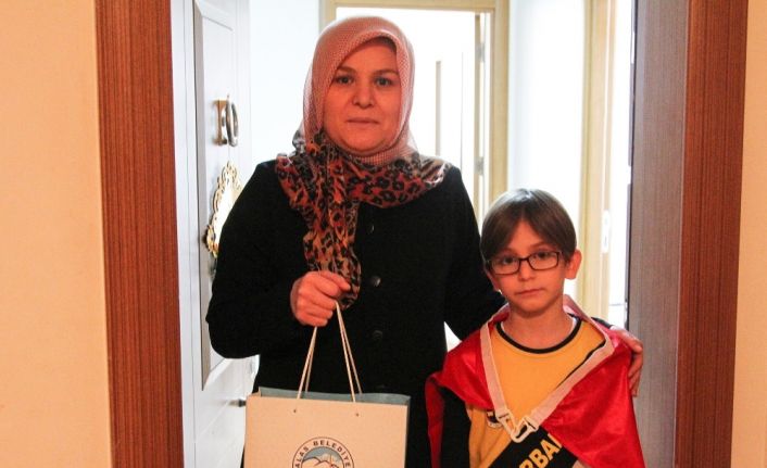 Talas’ta ikamet eden 37 gazi ve yakını ile 68 şehit yakını, belediye görevlileri tarafından evlerinde ziyaret edilerek Başkan Yalçın adına Türk Bayrağı, çikolata, kolonya, kahve ve hijyen paketinden oluşan hediyeleri takdim edildi.