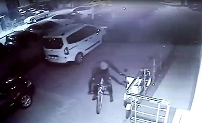 Kayseri’de gece bisikletle bir apartmanın bahçesine giren hırsız gözüne kestirdiği 3 bin TL’lik elektrikli motosikleti alarak kayıplara karıştı.