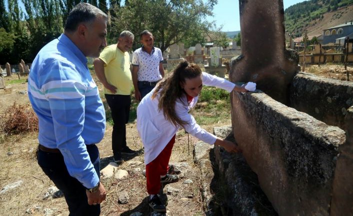 Çevre ve Şehircilik İl Müdürlüğü tarafından ’anıt ağaç’ olarak tescillenen ağacın içinde bulunan iki adet ve çevresinde bulunan 570 adet mezarda 11 kişilik ekibiyle birlikte çalışma başlatan Erciyes Üniversitesi Sanat Tarihi Doç. Dr. Aslı Sağıroğlu Arslan mezar taşlarının bir toplumun tapu senedi taşıdığını belirterek; “Araştırmalarımızda anladığımız kadarıyla Türkmenler Develi’yi fethetmeden önce buraya yerleşmişler. Bu mezarlıkta menhir geleneğine göre dikilen büyük blok taşlar ve kütle halinde oyulmuş çerçeveli ilginç mezar taşları da bulunmaktadır. Oğuz boylarından Salur boyu yanında Alka-evli, Eymur, Bayındır, Kargın boylarına ait tamgalı mezarların bulunduğu alanda ilk olarak belgeleme, fotoğraflama röleve çalışması yaptık ve daha sonra temizleme işlemlerine geçeceğiz. Çalışmalarımızı yürütürken bizlere her daim maddi-manevi destek sağlayan Develi Belediye Başkanımız Mehmet Cabbar’a teşekkür ediyor, çalışmalarımızı en güzel şekilde tamamlamayı temenni ediyorum” açıklamalarında bulundu.