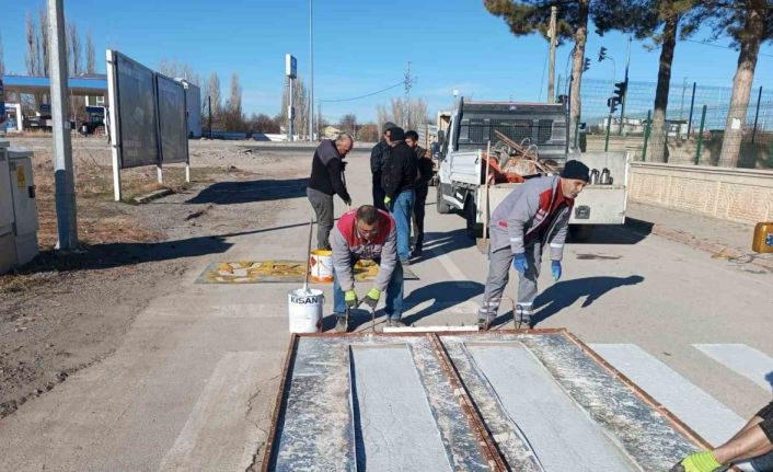 Bünyan Belediyesi ekiplerince eğitim öğretime verilen ara tatilin ardından öğrencilerin ve vatandaşların güvenliğini artırmak amacıyla okul çevresindeki yaya geçitleri yenileniyor.