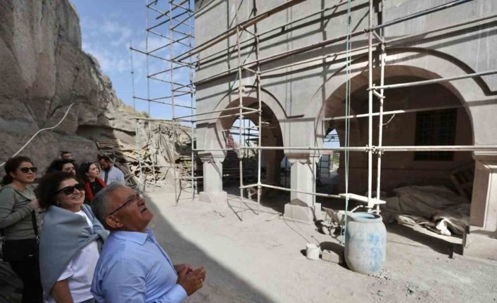 Büyükşehir Belediye Başkanı Dr. Memduh Büyükkılıç, kadim kentin eşsiz tarih ve kültürel mirasına sahip çıkma ve geleceğe taşıma noktasında büyük bir hassasiyet göstermeye devam ediyor. Bu kapsamda Başkan Büyükkılıç, restorasyon çalışmaları süren 1838 yılında yapılarak günümüze ulaşan ve İncesu Kent Müzesi’ne dönüştürülecek olan Aziz Eusthatios Rum Kilisesi’nde incelemelerde bulunarak, restorasyon ekibinden çalışmalar hakkında bilgi aldı. İncelemeler esnasında açıklamalarda bulunan Büyükkılıç, “İncesu’daki tarihi dokuyu içeren bir dini mekândayız. Metruk bir görüntü arz ederken harabeye dönmüş olan bu yapıyı ortaya çıkartmak amacıyla restorasyon çalışmaları tamamlanma aşamasına geldi. İnşallah burayı İncesu’muzun değerlerini yansıtacak olan kent müzesine dönüştürme yönünde gayretlerimiz söz konusu olacak” diye konuştu.