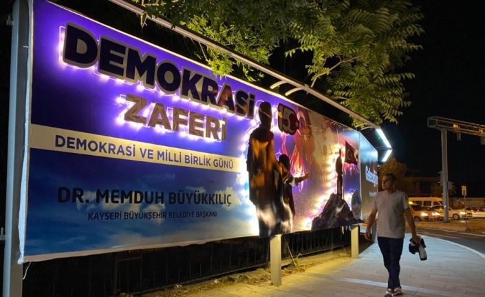 Kayseri Büyükşehir Belediyesi, 15 Temmuz 2016 günü ülkemizde yaşanan hain girişimi unutturmamak ve o gece ülkesine, demokrasiye sahip çıkmak için Cumhurbaşkanı Recep Tayyip Erdoğan’ın davetiyle meydanlara inen ve bu uğurda şehadete yürüyen kahramanların anısını yaşatmak adına tüm şehri 15 Temmuz billboardlarıyla süsledi. Cumhuriyet Meydanı ve Kartal Kavşağı’nda 3 boyutlu görsellerin yanı sıra şehirdeki tüm açık hava reklam alanları 15 Temmuz destanı ile donatılarak bir kez daha ’15 Temmuz Ruhu’ yaşatıldı. Büyükşehir Belediyesi tarafından şehrin birçok noktasına asılan ışıklı billboardlar vatandaşların da beğenisini kazandı.