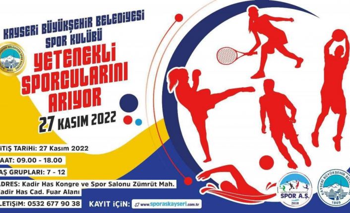 Kayseri Büyükşehir Belediyesi Spor A.Ş., spor kulübü bünyesinde geleceğin sporcularını yetiştirmek amacıyla yetenek taraması yapıyor. 27 Kasım 2022 Pazar günü 09.00-18.00 saatleri arasında yapılacak yetenek taraması neticesinde 7-12 yaş aralığındaki çocukların becerilerine göre uygun branşa yönlendirmeleri yapılacak.