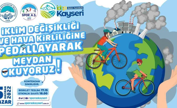 Kayseri Büyükşehir Belediyesi İklim Değişikliği ve Sıfır Atık Daire Başkanlığı ile Spor A.Ş. işbirliğiyle Dünya Çevre Günü’nde, iklim değişikliği ve hava kirliliği için farkındalık oluşturmak amacıyla 10 kilometrelik parkurda bisiklet turu düzenlenecek.