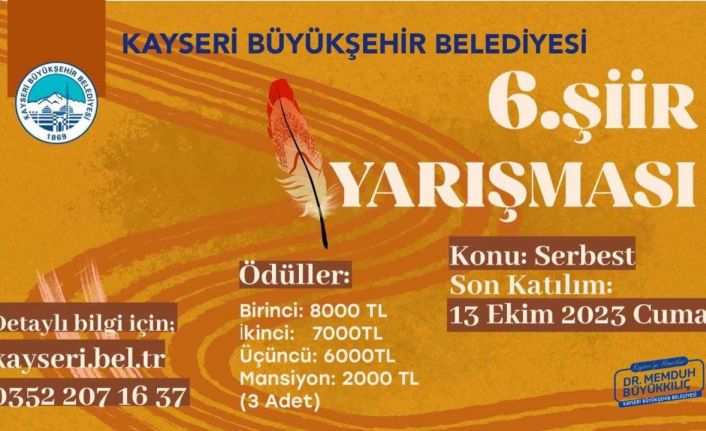 Şiir dünyasına gönül vermiş her vatandaşın katılımına açık olan yarışmaya son katılım, 13 Ekim 2023 Cuma günü olarak belirlenirken, yarışmaya ilişkin detaylı bilgi almak isteyen vatandaşların ‘kayseri.bel.tr’ internet adresini ziyaret etmesi veya 0 352 207 16 37 nolu telefondan yetkililere ulaşması yeterli olacak.