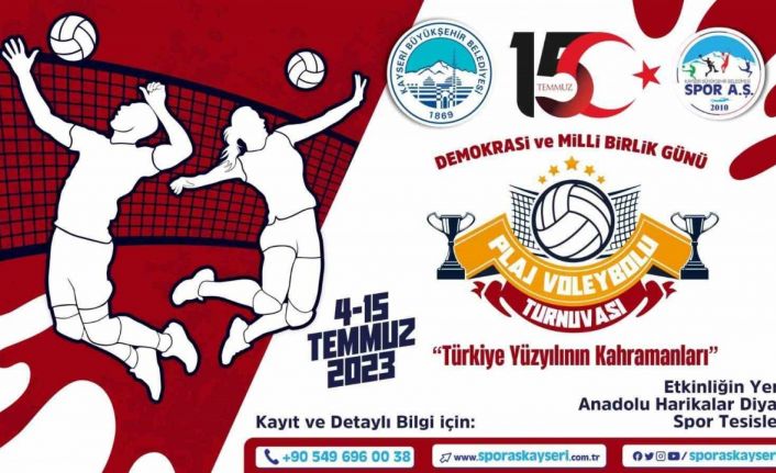 Kayseri Büyükşehir Belediyesi Spor A.Ş. tarafından 15 Temmuz Demokrasi ve Milli Birlik Günü’ne özel “Türkiye Yüzyılının Kahramanları” teması ile 4-15 Temmuz 2023 tarihleri arasında düzenlenecek Plaj Voleybolu Turnuvası’na kayıtlar başladı.