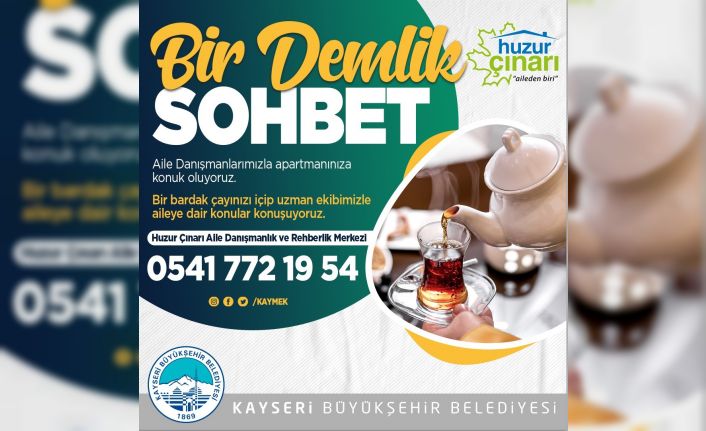 Kayseri Büyükşehir Belediyesi, toplumun rehabilitasyonuna yönelik gerçekleştirdiği projelerini sürdürüyor. Bu çerçevede Kayseri Mesleki Eğitim ve Kültür A.Ş. (KAYMEK) Huzur Çınarı Aile Danışmanlık ve Rehberlik Merkezi tarafından Bir Demlik Sohbet sloganı ile apartmanlara ziyaretler gerçekleştiriliyor.