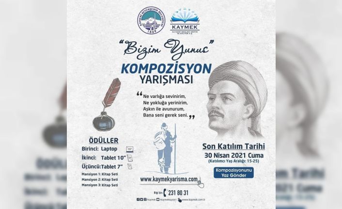 Bu kapsamda KAYMEK tarafından ‘Bizim Yunus’ adlı ödüllü kompozisyon yarışması düzenleneceğini söyleyen Büyükkılıç, “KAYMEK’imizin eğitim ve kültür faaliyetleri hız kesmeden devam ediyor. Anadolu’da Türkçe şiirin öncüsü olan tasavvuf ve halk şairi Yunus Emre’nin gençlerimiz tarafından anlaşılması büyük önem taşıyor” dedi.
