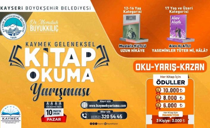 Kayseri Büyükşehir Belediyesi bünyesindeki KAYMEK A.Ş., geleneksel hale getirdiği kitap okuma yarışmasıyla gençleri ve yetişkinleri okuma kültürü etrafında buluşturuyor. İki ayrı kategoride düzenlenecek yarışmada toplamda 66 bin TL’lik ödül dağıtılacak.