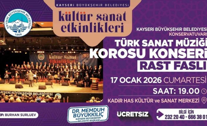Kayseri Büyükşehir Belediyesi Konservatuvarı Türk Sanat Müziği Korosu, Klasik Türk Musikisi’nin en köklü makamlarından Rast Faslı’nı, zengin repertuvarıyla sanatseverlerle buluşturuyor.