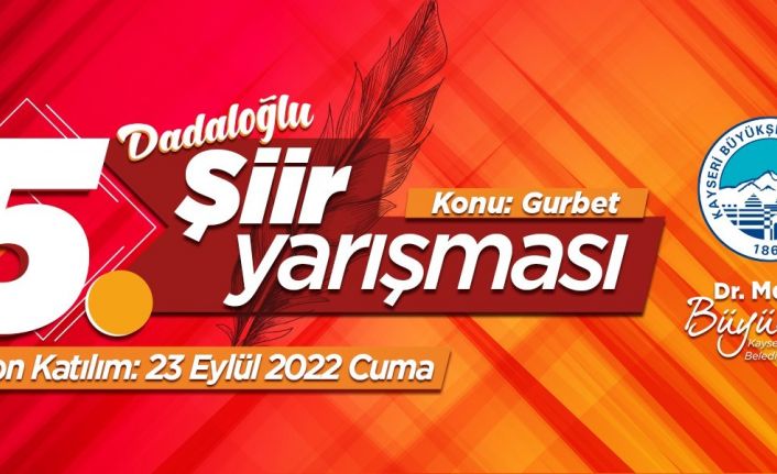 Kayseri Büyükşehir Belediye Başkanı Dr. Memduh Büyükkılıç, kültür sanat etkinlikleri çerçevesinde her yıl geleneksel olarak düzenlenen şiir yarışmasının beşincisinin bu yıl ‘Dadaloğlu’ temasıyla düzenleneceğini ve başvuruların 20 Haziran’da başlayacağını duyurdu.