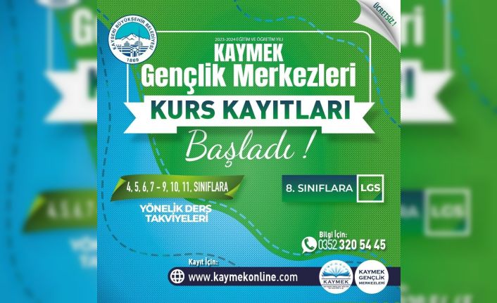 Büyükşehir Belediyesi Kayseri Mesleki Eğitim ve Kültür A.Ş. (KAYMEK) tarafından düzenlenen Gençlik Merkezi Kursları, 2023-2024 Eğitim Öğretim Yılı kayıtlarını sürdürüyor.