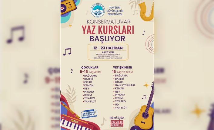 Kayseri Büyükşehir Belediyesi’nin merakla beklenen konservatuvar yaz kursları kayıtları 12 Haziran’da başlayacak.