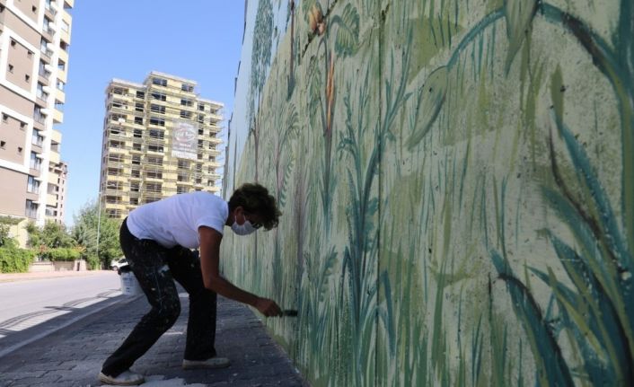Doğa ve çevre için yaptığı çalışmalarla örnek olan Melikgazi Belediyesi Osman Ulubaş Okulu’nun bahçe duvarlarına ağaç ve orman manzaralı resimler çiziyor.