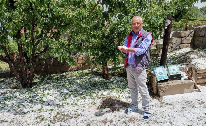 Kayseri’nin Kocasinan ilçesinde yağan dolu ortalığı beyaza bürüdü.