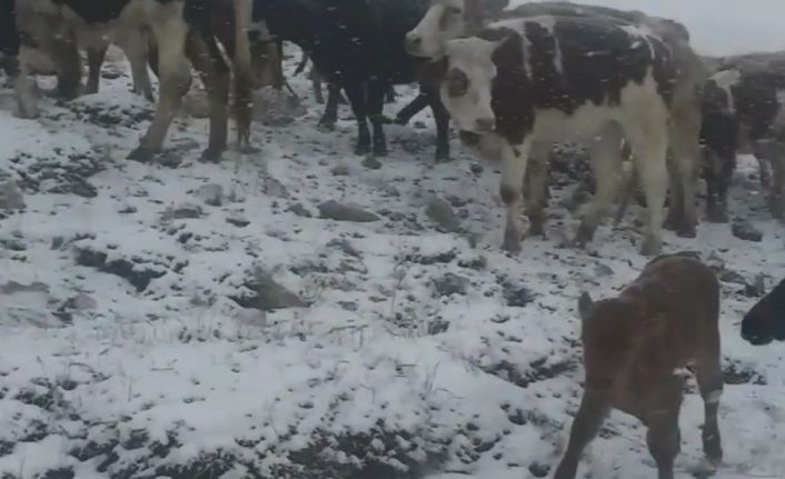 Kayseri’nin Develi ilçesinde yoğun kar yağışı nedeniyle yaylacıların kaybolan büyükbaş hayvanları bulundu.