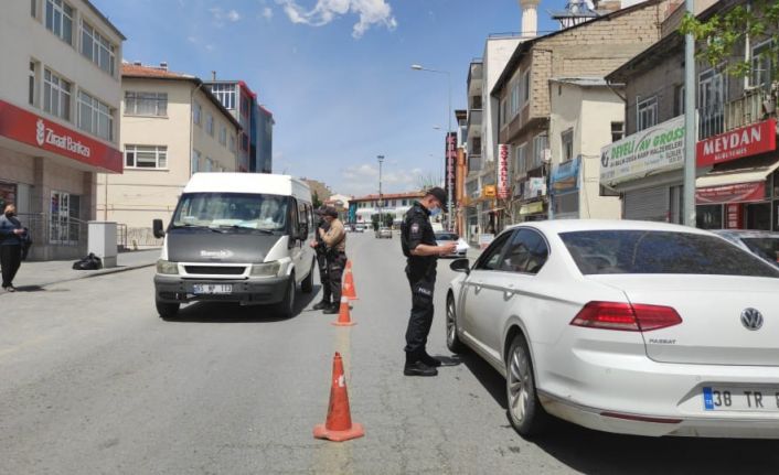 Develi’de 17 günlük tam kapanmanın 2. gününde polis ekiplerinin denetimleri aralıksız olarak sürdü.