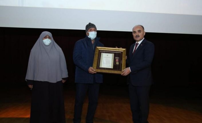 Cumhurbaşkanı Recep Tayyip Erdoğan tarafından Kayseri’deki şehit ailelerine ve gazilere gönderilen “Devlet Övünç Madalyaları” düzenlenen tören ile hak sahiplerine Vali Şehmus Günaydın tarafından verildi.