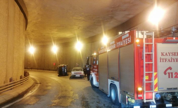 Kayseri’nin Melikgazi ilçesinde sürücüsünün direksiyon hakimiyetini kaybettiği güvenlik bariyerine çarptıktan sonra yan yattı.