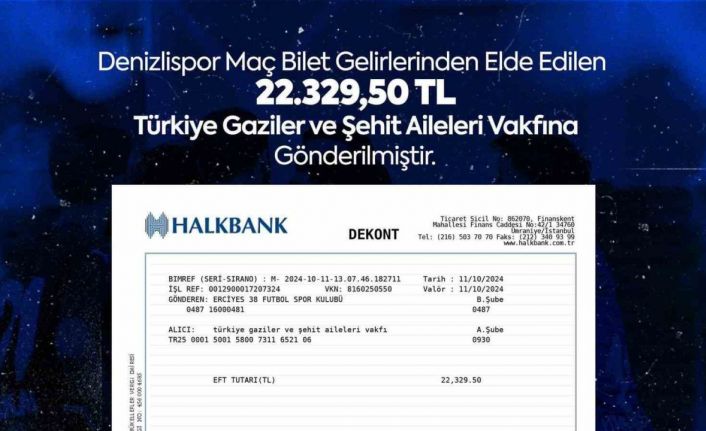 Erciyes 38 Futbol Kulübü, Denizlispor maçının hasılatını Türkiye Gaziler ve Şehit Aileleri Vakfı’na bağışladı.
