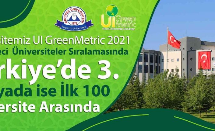 Dünya üniversitelerini çevreye duyarlılık, enerji, atık, ulaşım yönetimi ve sürdürülebilirlik alanlarında değerlendiren UI GreenMetric Dünya Üniversiteleri Sıralama Sistemi 2021 yılı sonuçları açıklandı. Erciyes Üniversitesi (ERÜ) 956 üniversitenin sıralandığı değerlendirmede dünya üniversiteleri arasında 99. sırada, Türkiye Üniversiteleri arasında sıralamaya giren 71 üniversite içerisinde 3. sırada, devlet üniversiteleri arasında ise 2. sırada yer aldı.