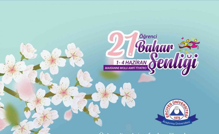 Erciyes Üniversitesi (ERÜ) “21. Bahar Şenliği”, 1-4 Haziran 2022 tarihleri arasında düzenlenecek. 4 gün boyunca ünlü sanatçıların sahne alacağı şenliğe 1 Haziran saat 12:00’de protokol konuşmaları ve geleneksel şenlik pilavı ikramı ile start verilecek.