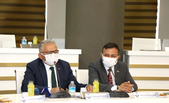 ERÜ Senato Salonu’nda gerçekleştirilen toplantıya; Büyükşehir Belediye Başkanı Dr. Memduh Büyükkılıç, ERÜ Rektörü Prof. Dr. Mustafa Çalış, Melikgazi Belediye Başkanı Mustafa Palancıoğlu, Kocasinan Belediye Başkanı Ahmet Çolakbayrakdar, Talas Belediye Başkanı Mustafa Yalçın, Hacılar Belediye Başkanı Bilal Özdoğan, Kayseri Ticaret İl Müdürü Alaattin Fırat, Kayseri Ticaret Odası Başkanı Ömer Gülsoy, Kayseri Ticaret Borsası Başkanı Recep Bağlamış, Sanayi Odası Başkan Yardımcısı Ahmet Gümüşçü, Kayseri Organize Sanayi Bölgesi Başkanı Tahir Nursaçan, İncesu Organize Sanayi Bölgesi Başkanı Ali Baktır, Kayseri Esnaf ve Sanatkârlar Odaları Birliği Başkanı Ahmet Övünç, Kayseri Esnaf Kredi ve Kefalet Kooperatifi Yönetim Kurulu Başkanı Mustafa Alan, Diyanet İşleri Emekli Başkan Yardımcısı Necmettin Nursaçan katıldı.
