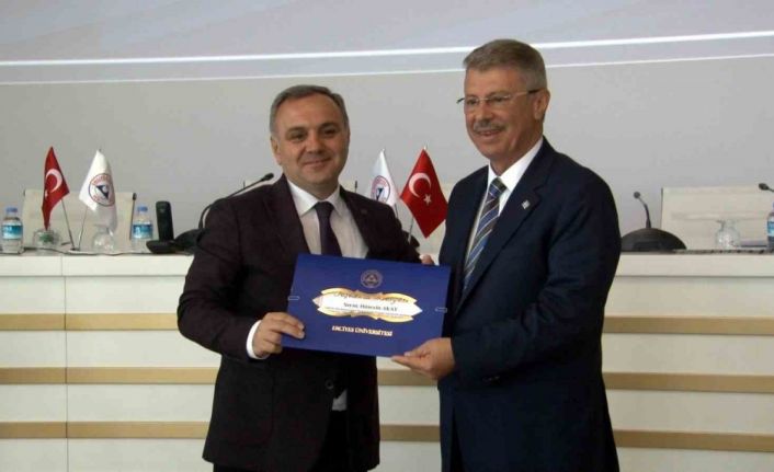 Konuşmaların ardından Rektör Altun, Hüseyin Akay ve projede yer alan yöneticilere teşekkür belgesi hediye etti.