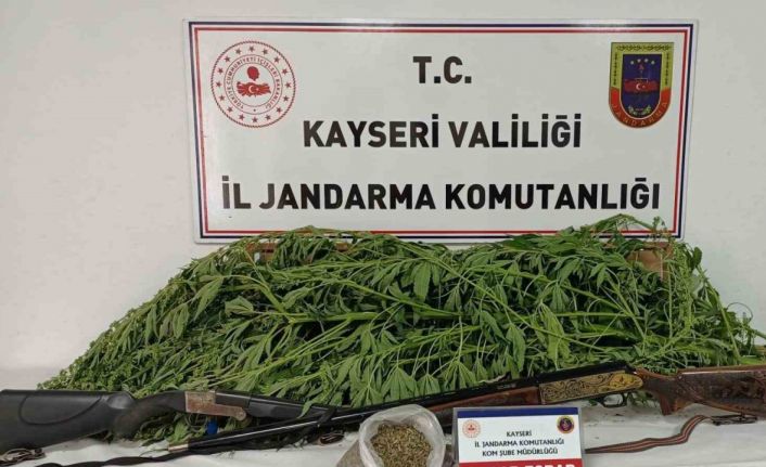 Kayseri İl Jandarma Komutanlığı ekiplerince yapılan çalışmalarda bir evin bahçesinde 21 kök kenevir bitkisi ele geçirilirken ev sahibi gözaltına alındı.