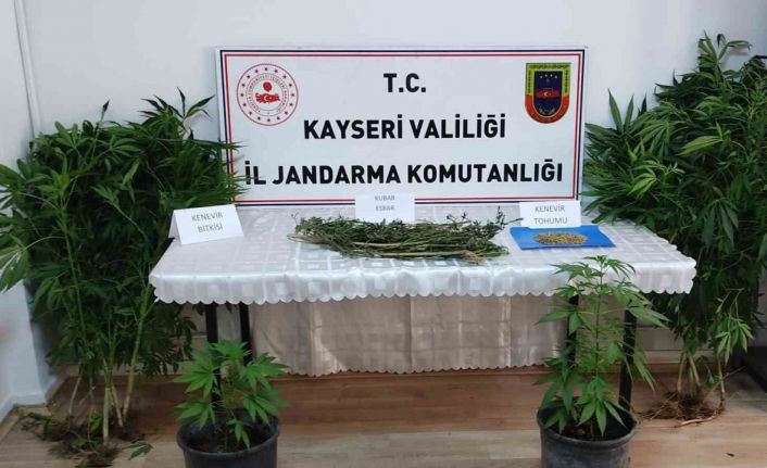 Kayseri İl Jandarma Komutanlığı ekiplerince yapılan çalışmalarda evinde kenevir bitkisi yetiştiren şahıs gözaltına alınırken çeşitli miktarlarda uyuşturucu madde ele geçirildi.