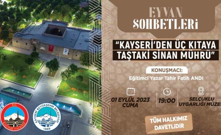 Kayseri’nin değerlerini, sahip olduğu özelliklerini, kültür ve tarihini konu alan Eyvan Sohbetleri programı, kadim kentin önemli değerlerini tanıtmaya ve farklı, çarpıcı yönler ile anlatmaya devam ediyor. Bu istikamette Kayseri’den dünyaya açılarak döneme ve dünyaya mimari konusunda damga vuran, ‘Koca Sinan’ olarak da bilinen Mimar Sinan’ı konu alan Eyvan Sohbetleri, Kayserililerle buluşacak. Eyvan Sohbetleri’nde bu kez katılımcılarına Mimar Sinan’ı anlatacak olan konuşmacı Eğitimci Yazar Tahir Fatih Andı, ’Kayseri’den Üç Kıtaya Taştaki Sinan Mührü’ başlıklı konu ile ünlü mimarın hayatına ve eserlerine dair bilgiler paylaşacak.