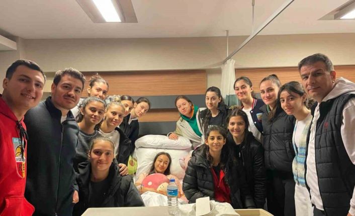 Melikgazi Kayseri Basketbol Alt Yapı Sorumlusu Emin Süel ve genç takımdan oyuncuları genç oyuncuyu hastanede ziyaret ederek, moral verdiler.