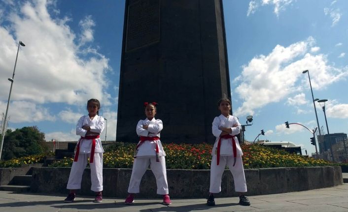 Kayseri’de genç karateciler, Yıldızlar Karate Türkiye Şampiyonası öncesinde kentin farklı mekanlarında çekilen tanıtım klibinde hünerlerini sergiledi.