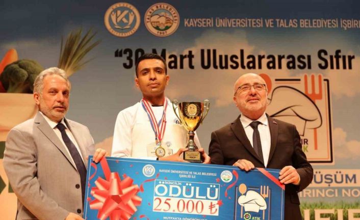 Kayseri’de, Talas Belediyesi ve Kayseri Üniversitesi (KAYÜ) işbirliğinde düzenlenen yemek yarışmasında dereceye giren genç şef adayları ödüllerini aldı.