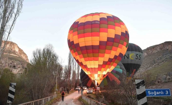 Vali Gökmen Çiçek’in Kayseri’de göreve başlamasıyla birlikte başlatılan çevre düzenleme çalışmaları ve yürüyüş yollarının tamamlanmasıyla yeni bir görünüme kavuşan ’Kapadokya’nın giriş kapısı’ olarak nitelendirilen Soğanlı Vadisi’ne turistler akın ediyor. Çalışmalarla birlikte farklı bir görünüme bürünen Kayseri’nin Yeşilhisar ilçesindeki Soğanlı Vadisi’ne gelen turist sayısı her geçen gün artarken, misafirler sıcak hava balonlarıyla kültürel mirası havadan izleme imkanı buluyor. Soğanlı Vadisi’ne gelen Güney Afrikalı turist kafilesi, şarkılar söyleyerek gönüllerince eğlendi. Şarkılara kendilerini kaptıran turistler, coşkuyla dans ederek Soğanlı’da unutulmaz bir gün yaşadı.