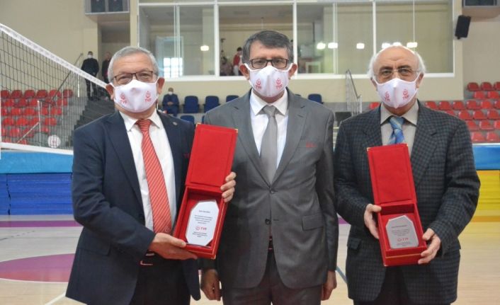 Uzun yıllar voleybolda hakem ve gözlemci olarak görev yapan Hacı Erol ve Ahmet Akkaya’ya Türkiye Voleybol Federasyonu tarafından teşekkür plaketi verildi.