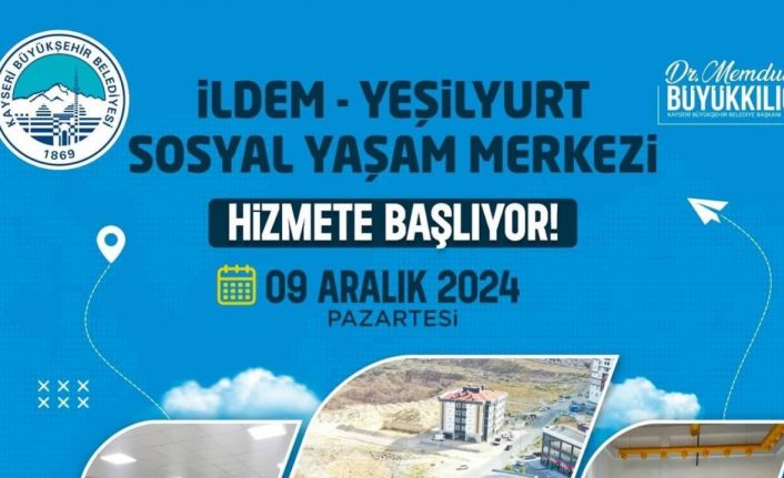 Kayseri Büyükşehir Belediye Başkanı Dr. Memduh Büyükkılıç’ın kente kazandırdığı Melikgazi ilçesi İldem bölgesine hitap edecek ve mahalle sakinleri ile bölgeye canlılık katacak İldem-Yeşilyurt Sosyal Yaşam Merkezi, Büyükşehir Belediyesi Spor A.Ş. bünyesinde 9 Aralık Pazartesi günü hizmet vermeye başlıyor.