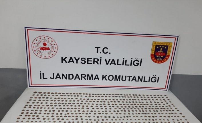 Kayseri’de jandarma ekipleri tarafından düzenlenen tarihi eser operasyonunda 550 adet sikke ele geçirildi.